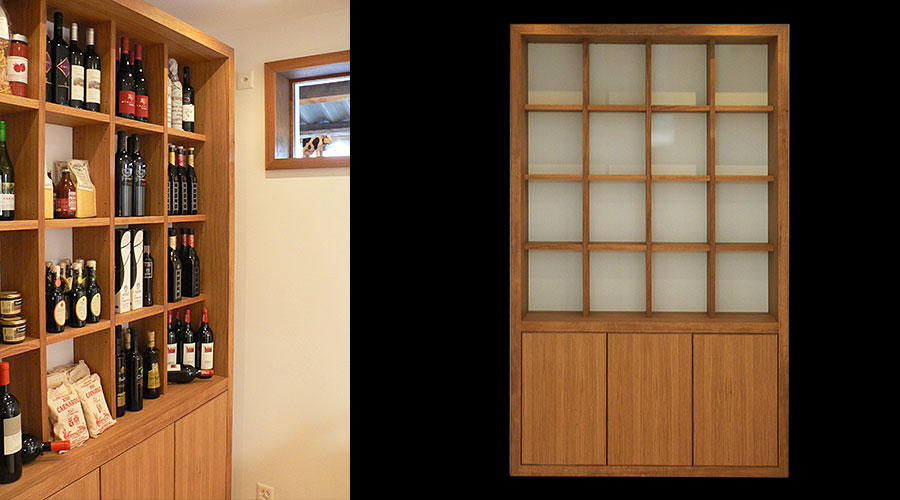Gestaltung und Umsetzung kompletter Inneneinrichtung. Sideboards, Boden, Kassenmöbel, Weingestell...